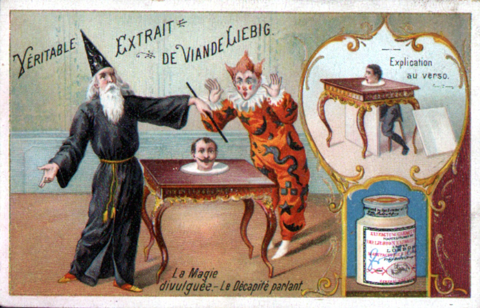 Cet effet continuera d’être présenté durant les siècles suivant, avec des méthodes qui se perfectionnèrent au fur et à mesure… au point d’en arriver à voir son secret révélé sur des petites images publicitaires offertes avec la viande Liebig au XIXe siècle.