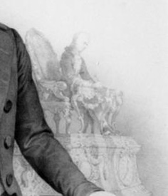Détail d’une rare lithographie montrant l’automate écrivain dessinateur