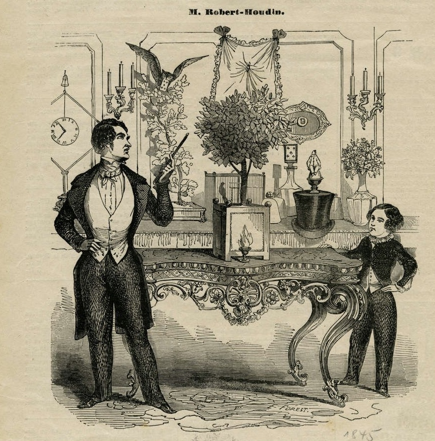Alors que Robert-Houdin a acquis un nom dans le domaine de l’horlogerie et des automates, il lui reste un domaine qu’il a toujours continué en parallèle mais dans lequel il ne s’est encore pas beaucoup produit : celui de la prestidigitation. Un an plus tard, le 3 juillet 1845, il donne alors sa première représentation publique de magie au Théâtre des Soirées fantastiques