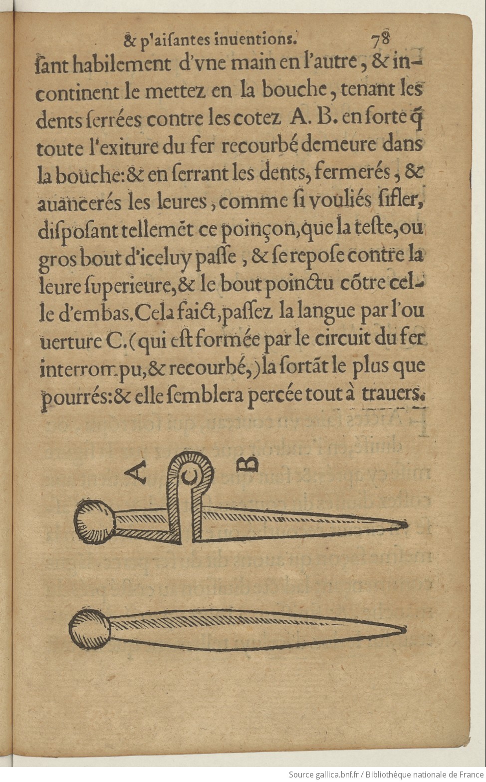La même année que le livre de Reginald Scot, parait en France La première partie des subtiles et plaisantes inventions de Prevost. Dans ce livre, on y trouve entre autres l’explication du couteau à travers le bras exactement tel qu’il est représenté dans cette gravure