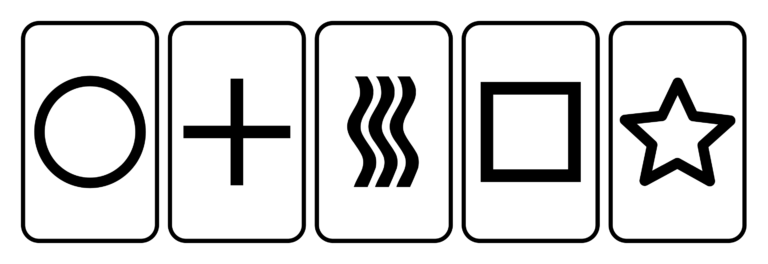 Ces symboles sont dit symboles ESP, E.S.P. pour Extra Sensory Perception. A l’origine, ces cartes étaient regroupées en cinq paquets de cinq cartes, soit un jeu de 25 cartes au total.