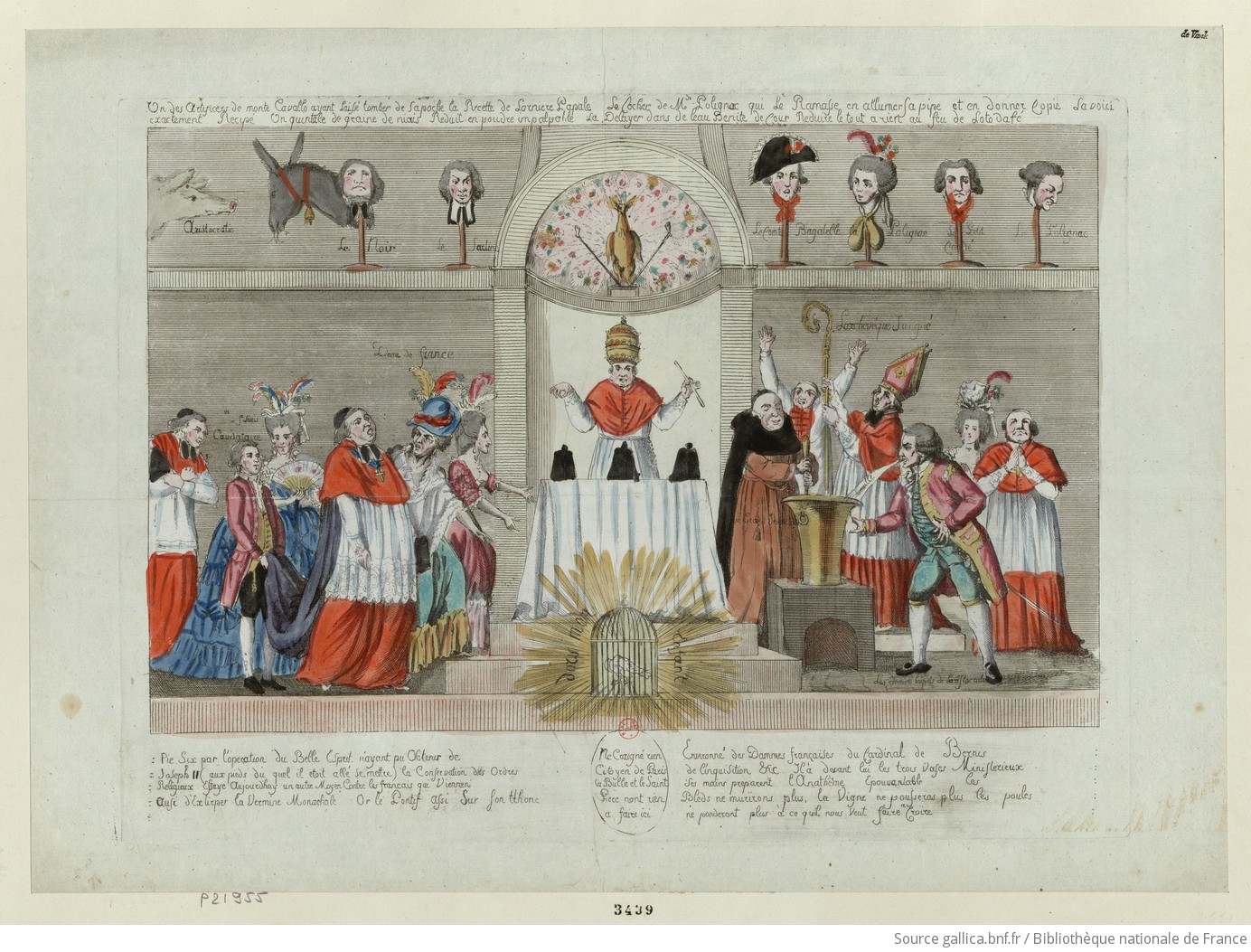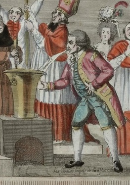 C’est dans ce contexte politique tendu qu’est publiée à Paris vers 1791 une estampe pour le moins surprenante qui représente le pape Pie VI… en escamoteur !
