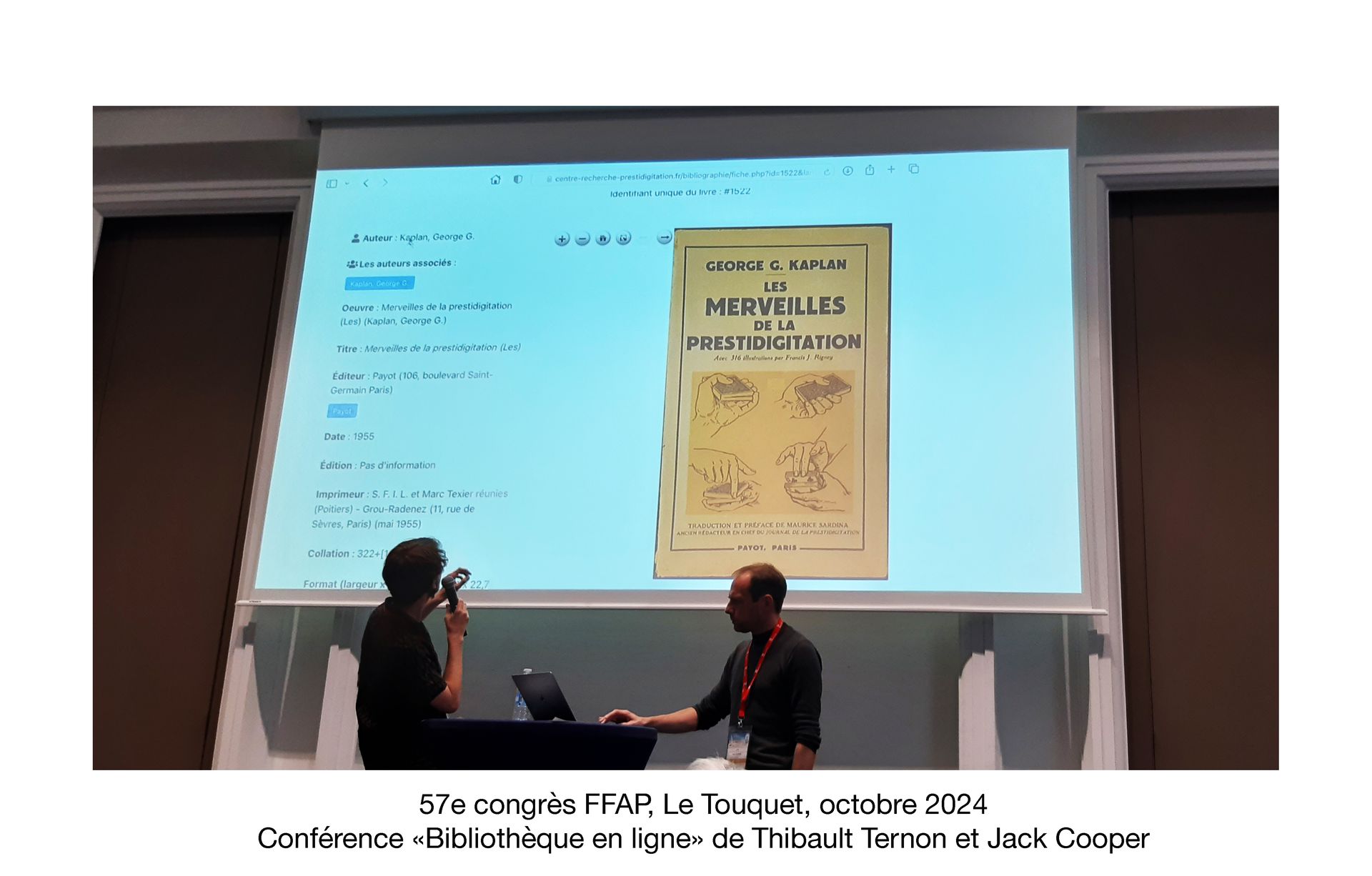 Certains connaissaient déjà ce site, mais nous avons eu le plaisir de présenter au congrès FFAP une conférence sur un outil développé par Jack Cooper et Thibault Ternon, accessible à tous, et qui réunit plusieurs milliers de livres sur le thème de la magie !