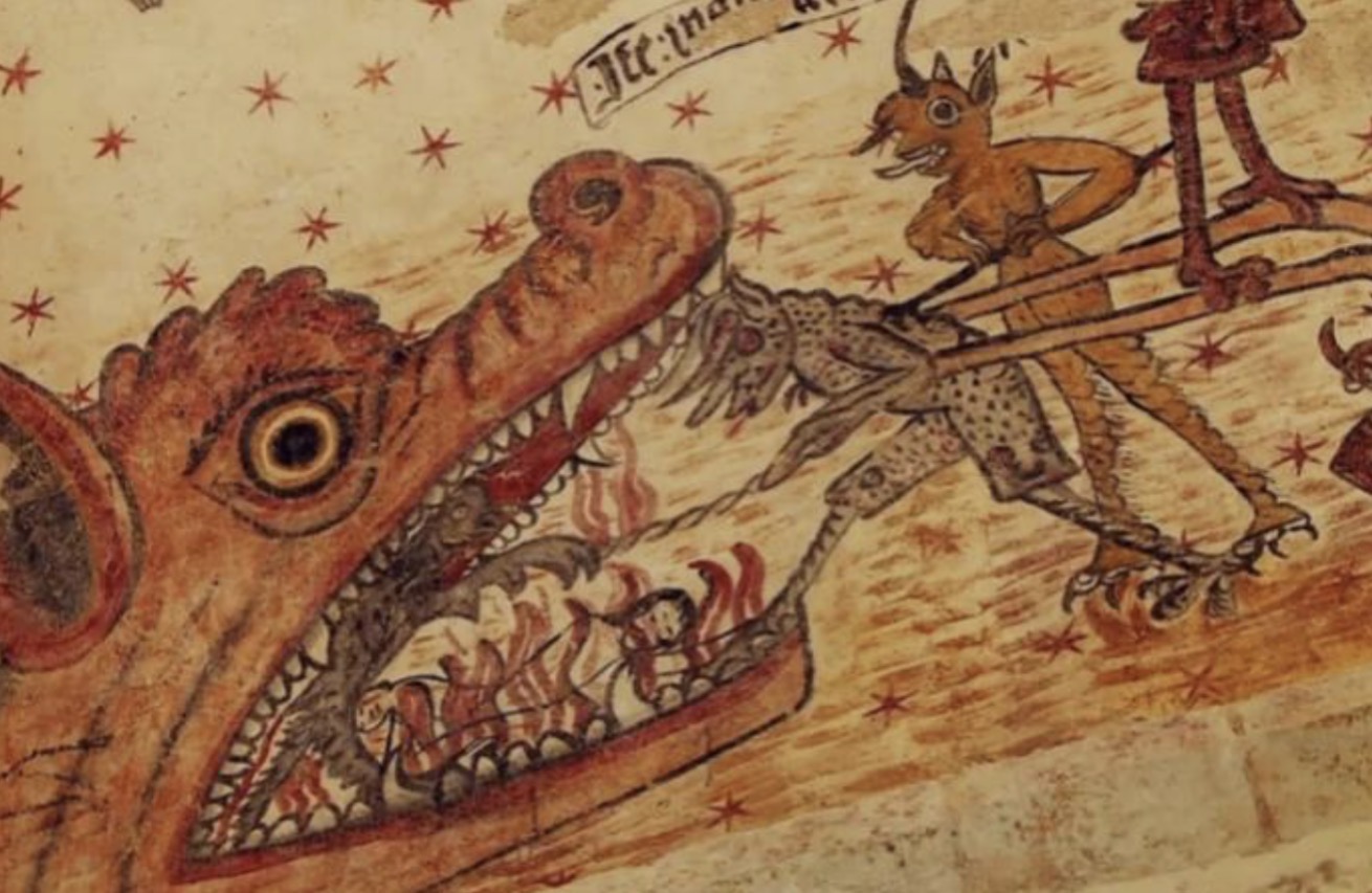 Représentation de l’Enfer sur le plafond de l’église de St Méard de Drone (Dordogne)