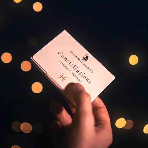 Imaginez un jeu de 12 cartes avec sur chacune d’entre elles un signe astrologique… et être capable de connaître le signe choisi sans aucun mouvement suspect. Un secret diabolique, qui vous permet de connaître en un clin d’œil le ou les signes choisis … sans avoir besoin de regarder le dos des cartes sélectionnées ! Plongez les spectateurs dans un numéro immersif avec des cartes richement illustrées, possédant des trous pour faire passer la lumière de votre portable et représenter les étoiles…
